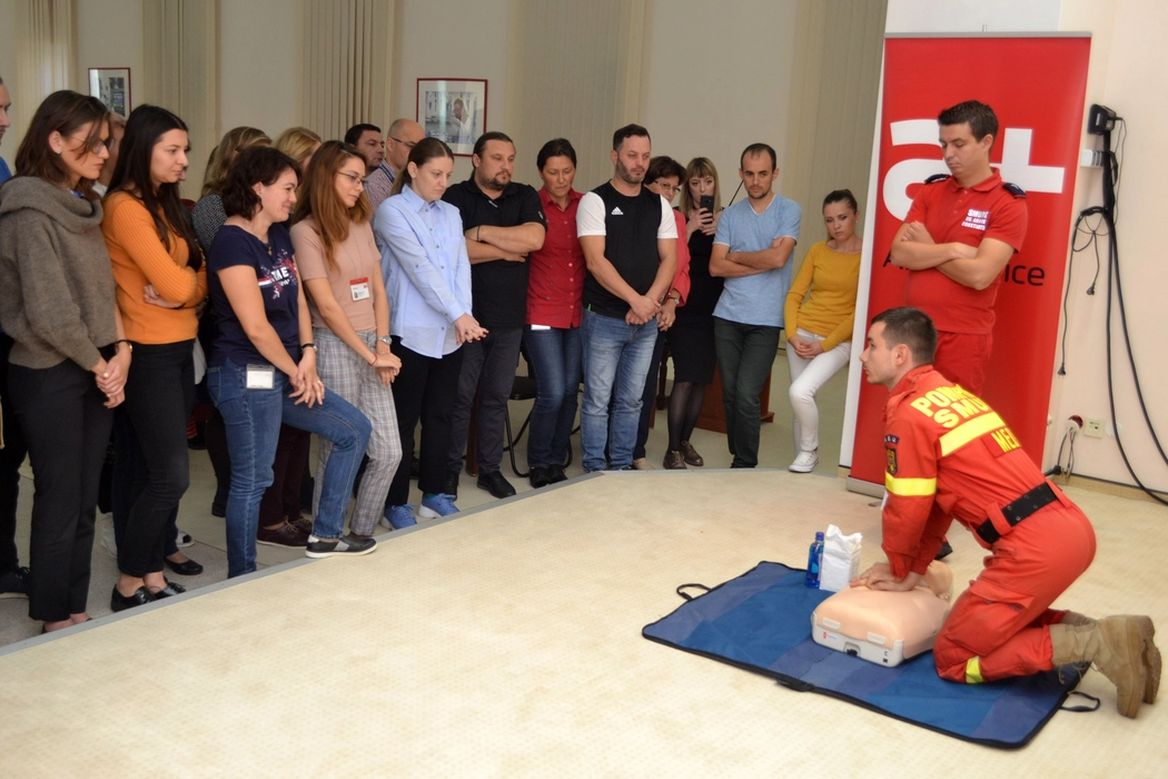 100 de angajați Antibiotice au exersat manevre de prim ajutor