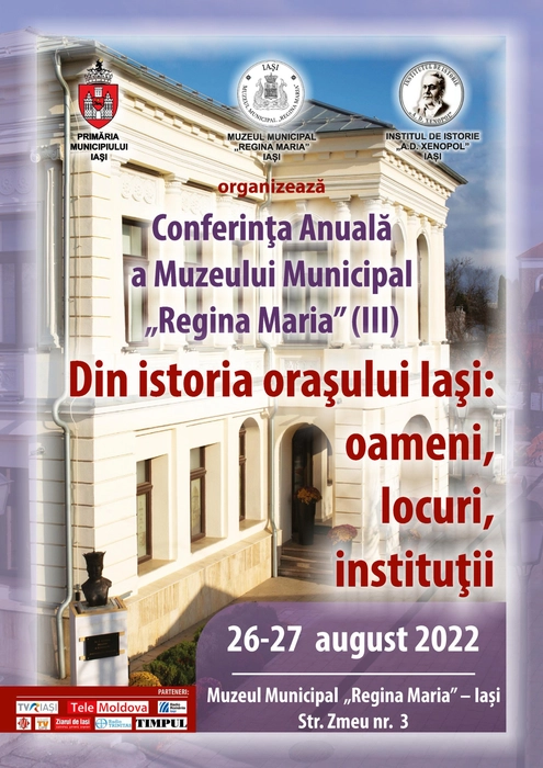 A treia ediţie a Conferinţei Anuale a Muzeului Municipal „Regina Maria” din Iași va avea loc în perioada 26 – 27 august