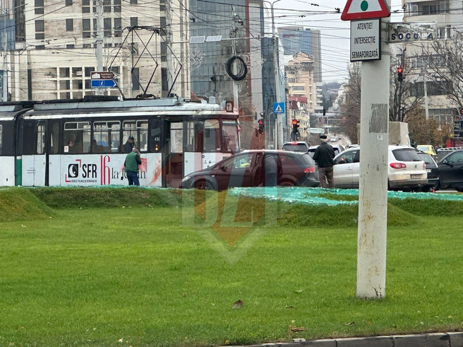Accident în rond Podu Roș! Un tramvai s-a ciocnit de o mașină – UPDATE