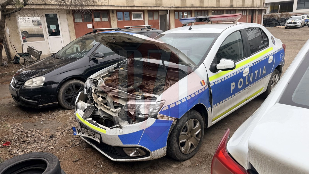 Accident neobișnuit în Copou: două autospeciale de poliție s-au izbit violent, iar una dintre ele a fost proiectată într-un autoturism. Erau conduse de polițiști de 21 și 23 de ani