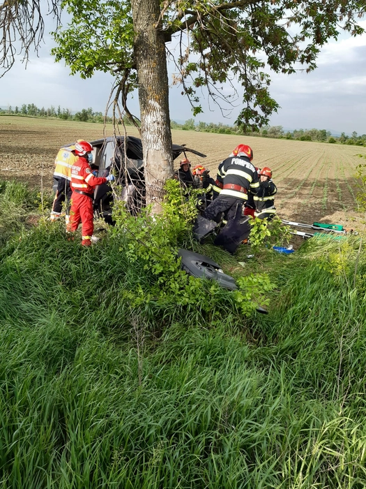 Accident rutier grav la Iași! Un autoturism a intrat în copac. Sunt două persoane rănite – EXCLUSIV, FOTO
