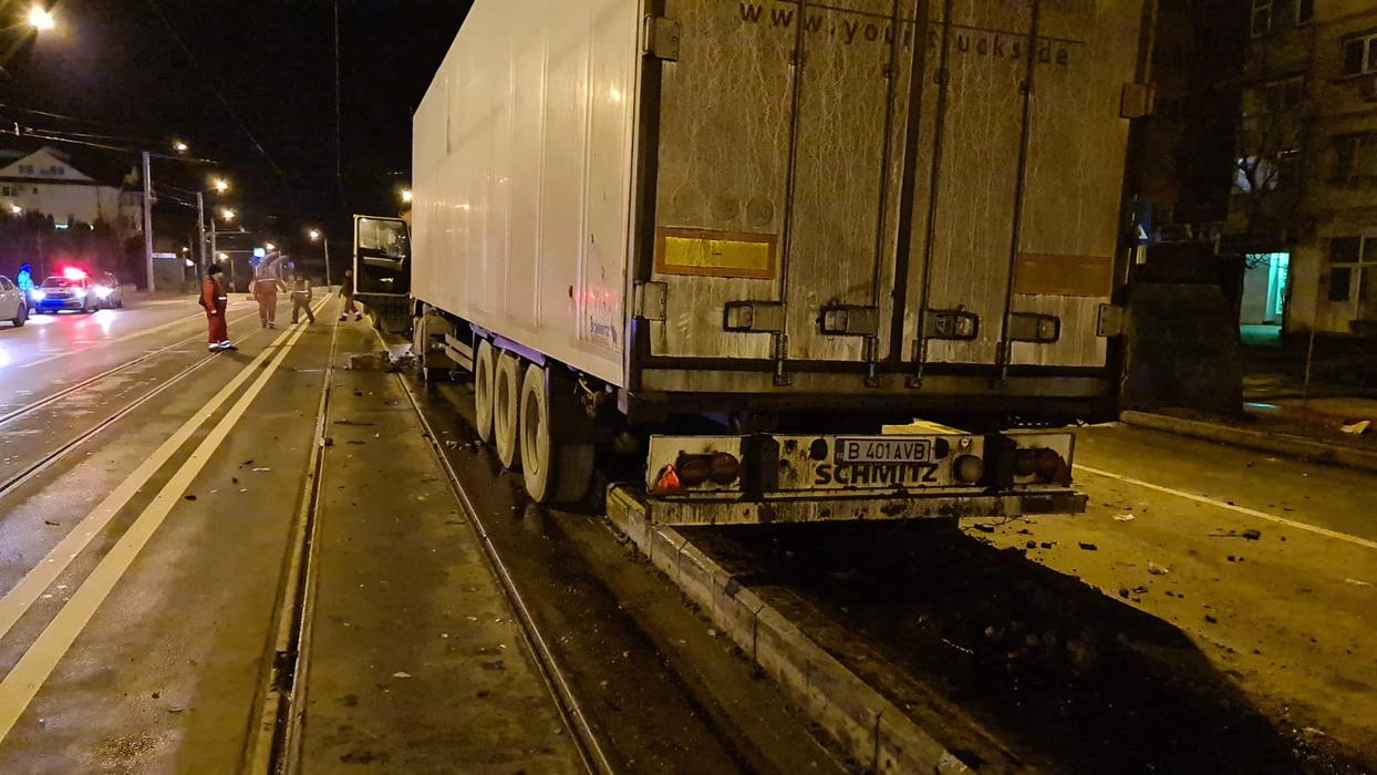 Accident rutier în municipiul Iași! Un TIR a intrat într-un refugiu de tramvai EXCLUSIV – VIDEO/FOTO