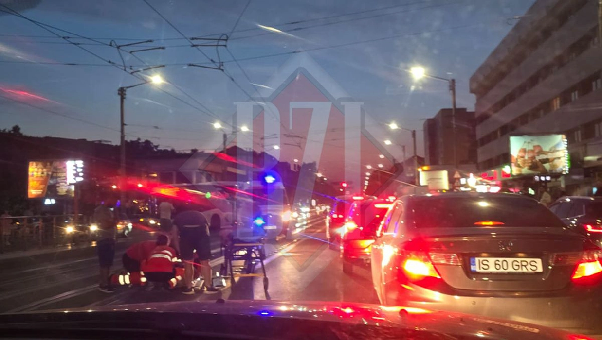 Accident rutier în Tudor Vladimirescu. Un bărbat s-a aruncat intenționat în fața unei motociclete. Ambele persoane au ajuns la spital