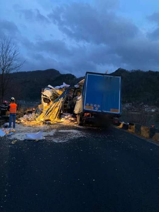 Accident rutier mortal în Valea Oltului. O femeie a fost expulzată prin parbriz, după ce două TIR-uri s-au izbit frontal – FOTO, VIDEO