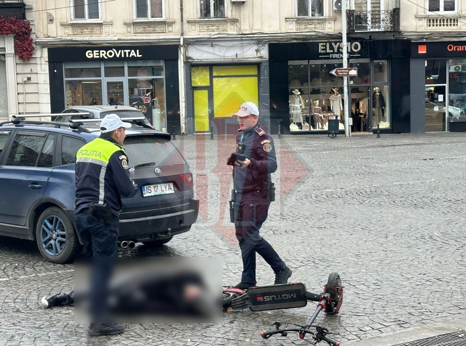 Accident rutier pe bulevardul Ștefan cel Mare. Un bărbat aflat pe trotinetă s-a izbit într-un autoturism – UPDATE