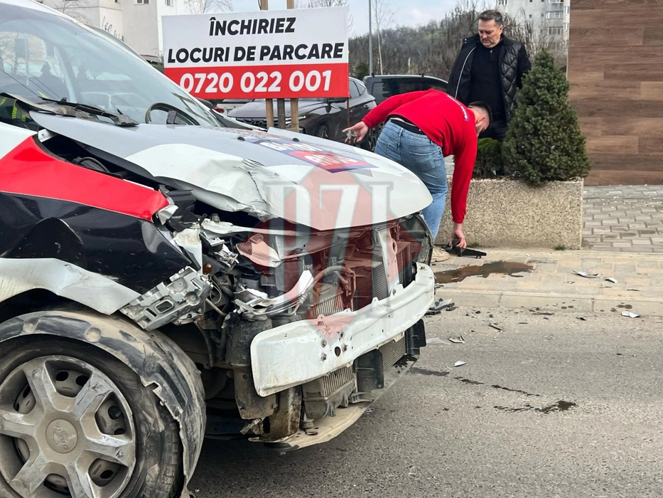 Accident rutier pe șoseaua Tudor Neculai. Un șofer a intrat cu autoturismul în fațada unui bloc de locuințe – EXCLUSIV