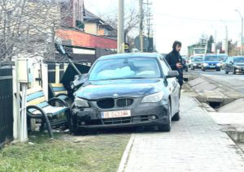 Accident spectaculos la Lețcani: BMW scăpat de sub control face ravagii pe trotuar