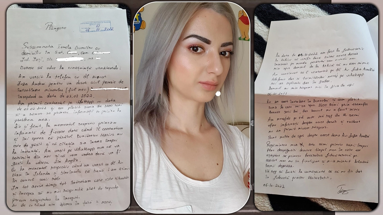 Ionela Dumitru îl aduce acuzații grave, avocatului Andrei Zuza, care a mințit-o timp de 8 luni de zile, a încasat banii și nu a demarat nici o procedură în vederea soluționării cazului