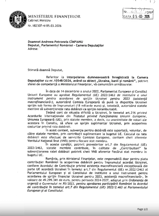 Adevărata notă de plată. Cât plătește România pentru împrumutul Ucrainei