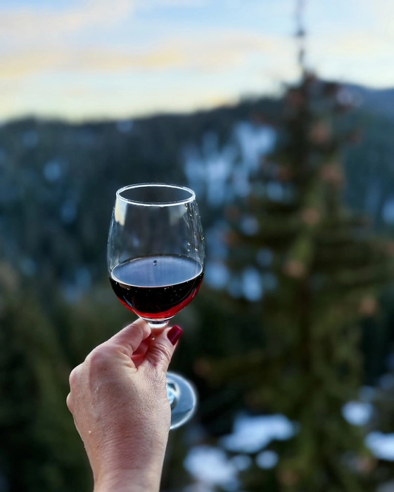 Andreea Bănică, în costum de baie pe zăpadă! Artista a ales să pozeze cu paharul de vin roșu în mână