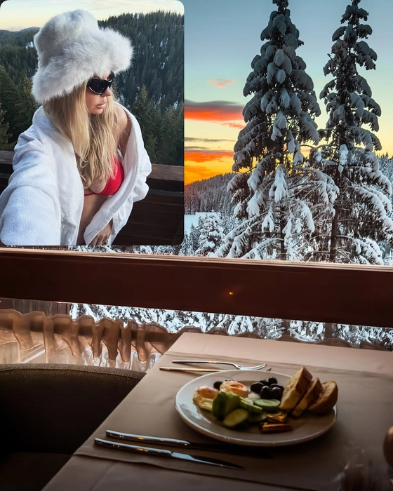 Andreea Bănică, în costum de baie pe zăpadă! Artista a ales să pozeze cu paharul de vin roșu în mână