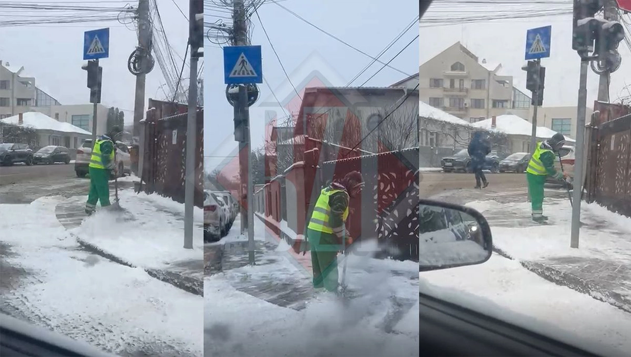 Angajații Salubris curăță trotuarele din Iași