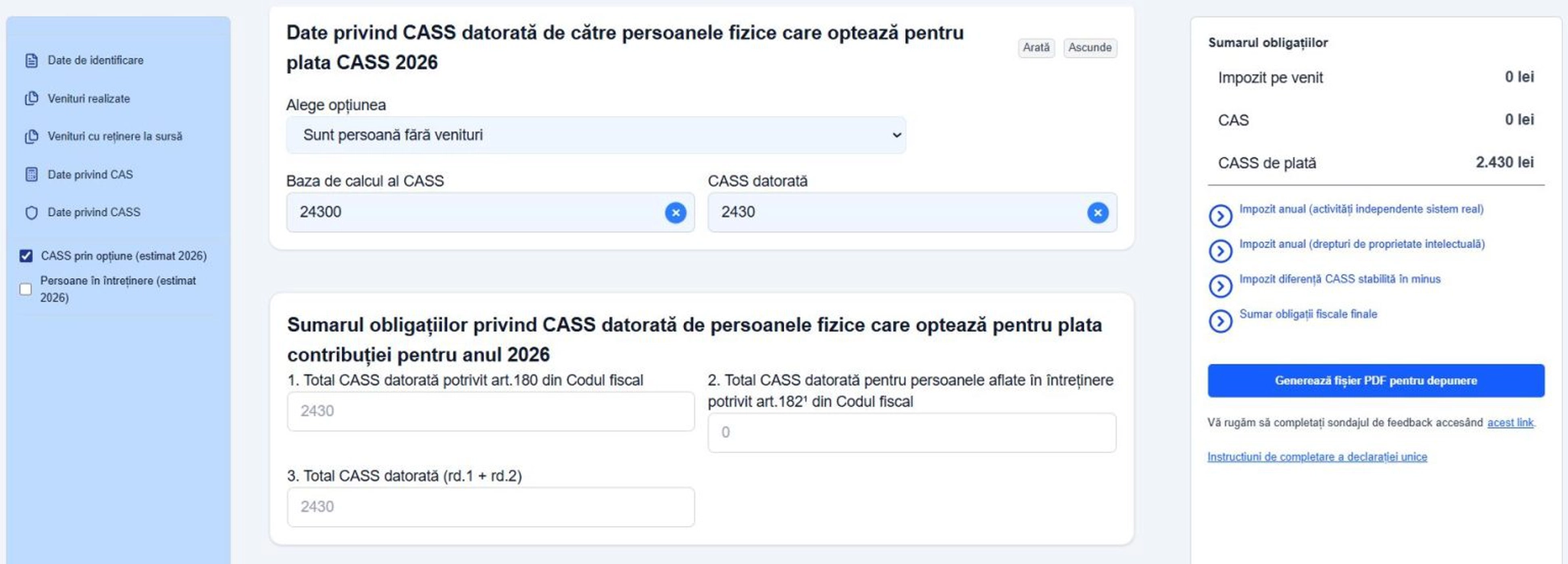 Asigurarea opțională la sănătate pentru persoanele fără venituri fiscalizate în 2026! Cum se plătește și cum se completează declarația unică