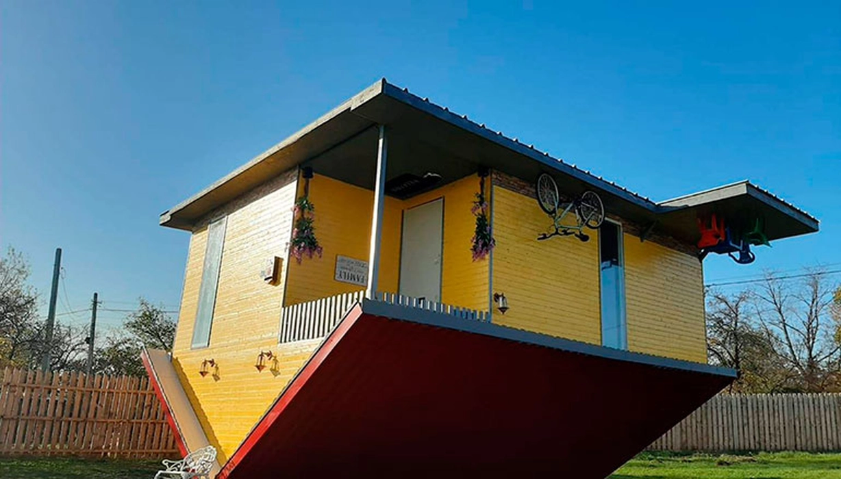 Casa răsturnată, obiectivul turistic nonconformist din judeţul Gorj. Proprietarul: „Vecinii râdeau prima dată“ – FOTO