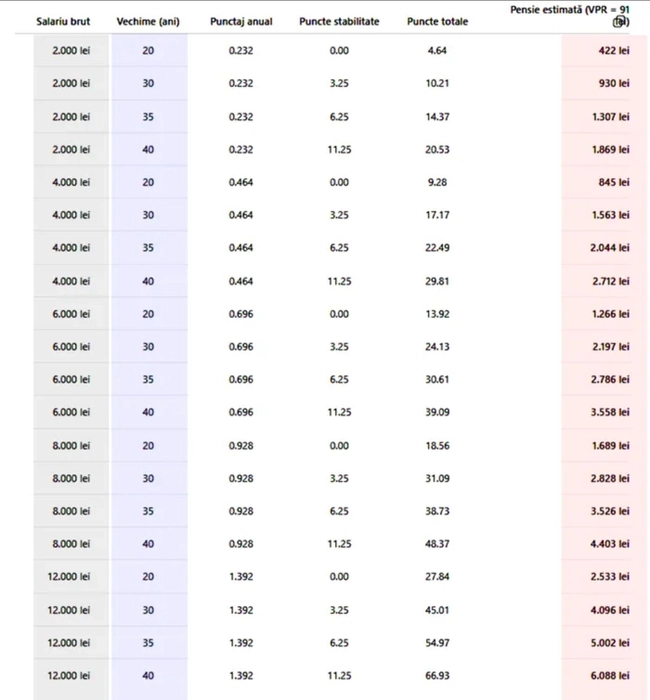 Ce pensie vei avea în România, în funcție de venit și vechime. Tabel estimativ conform valorii punctului de referință