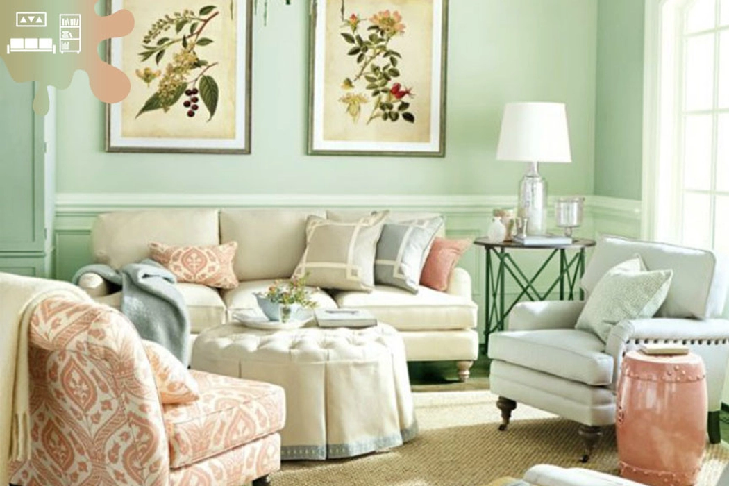 Verdele mentă se potrivește bine cu alb, creând o combinație fresh și elegantă