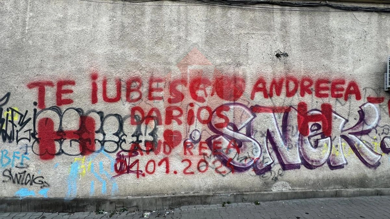 Declarație de dragoste la limita legii, înainte de Ziua Îndrăgostiților la Iași. Mesaj uriaș scris cu vopsea roșie pe fațada unui bloc din cartierul Alexandru cel Bun
