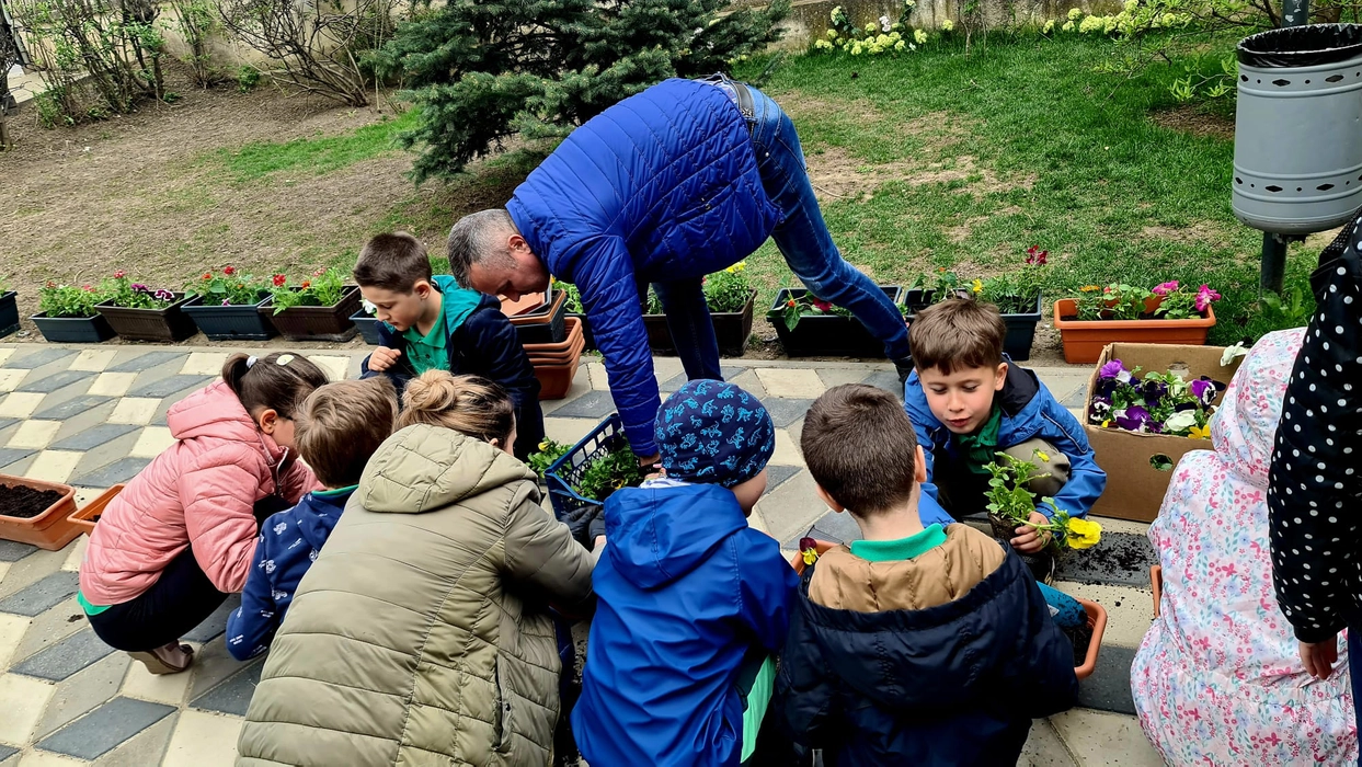Elevii de la Şcoala primară Junior din Iaşi au plantat flori, în „Săptămâna verde” – FOTO