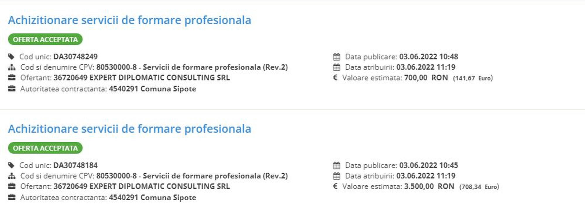 În comuna ieșeană Șipote, primarul Constantin Puiu a plătit pentru serviciile de formare profesională a funcționarilor peste 80.000 de lei, fără TVA