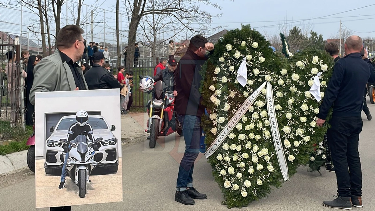 Imagini copleșitoare! O inimă uriașă din flori și zeci de motociclete turate la maximum au deschis cortegiul funerar. Andrei a fost condus pe ultimul drum ieri – FOTO/VIDEO