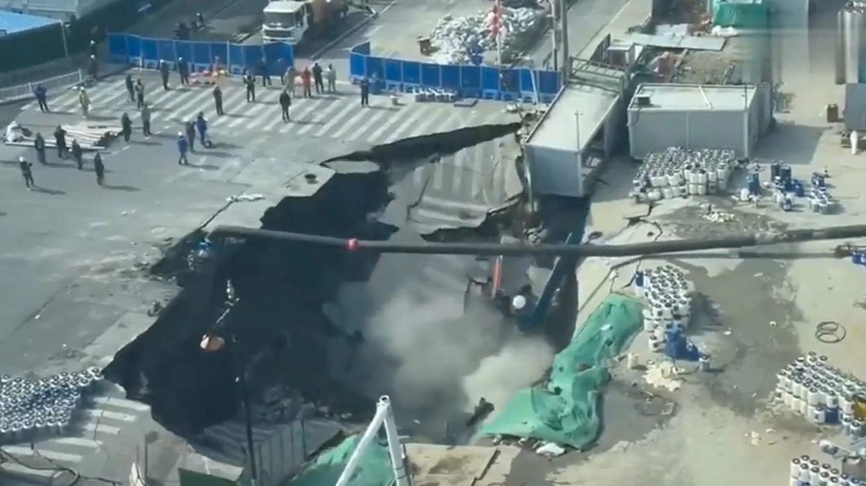 Imagini greu de privit! Momentul dramatic în care un crater uriaș înghite un drum intens circulat din Shanghai