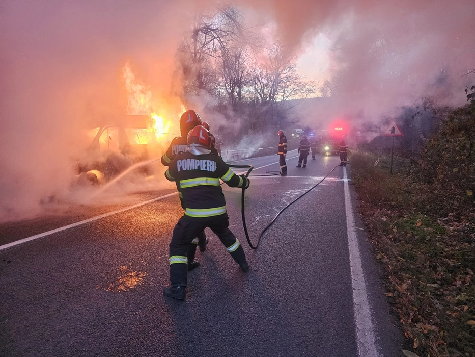 Incendiu în Bucium. Un microbuz cu călători a luat foc. Flăcările au mistuit vehiculul – UPDATE