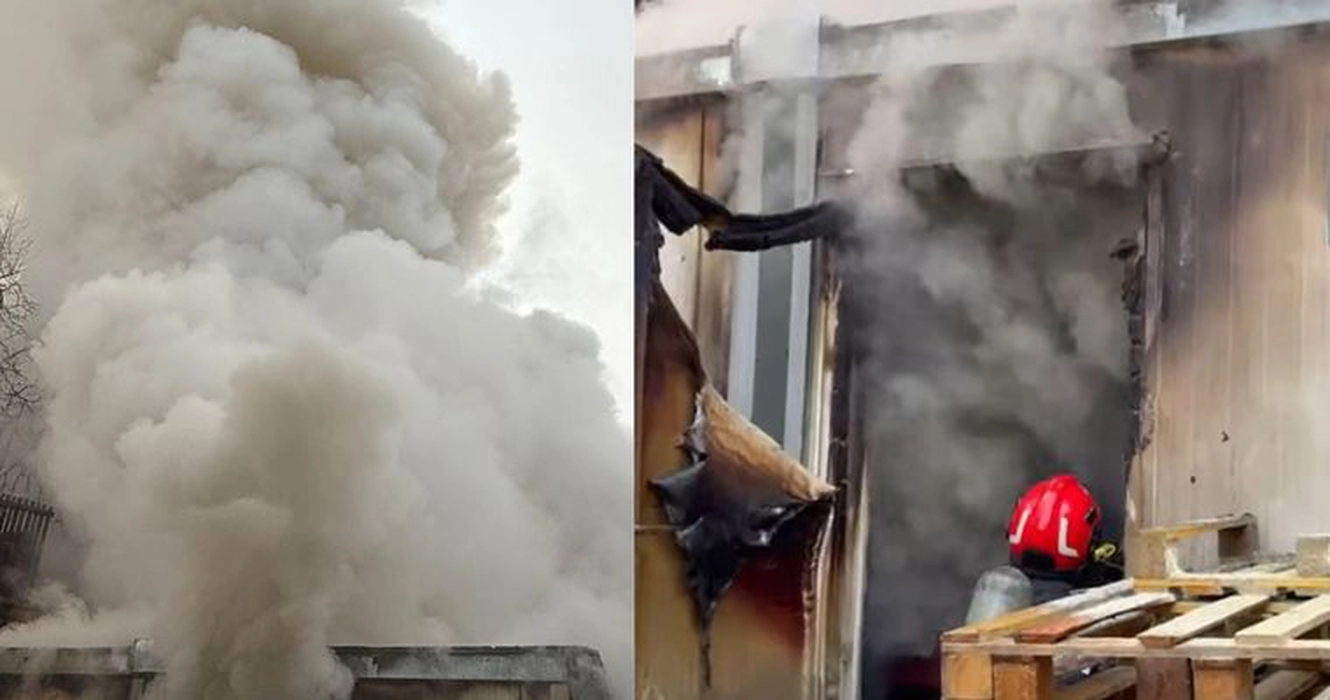 Incendiu la un spital din Brașov: foc puternic într-un container cu materiale sanitare, intervenție amplă a pompierilor