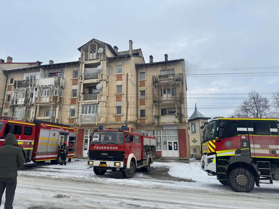 Incendiu puternic la un bloc din Țibănești. Mai multe persoane s-au autoevacuat