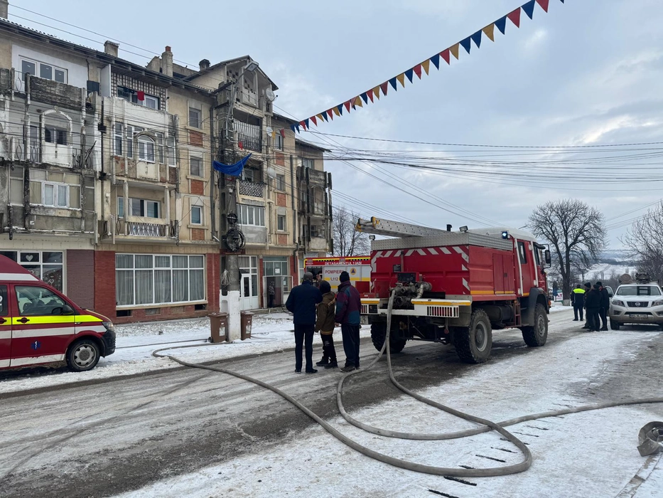 Incendiu puternic la un bloc din Țibănești. Mai multe persoane s-au autoevacuat
