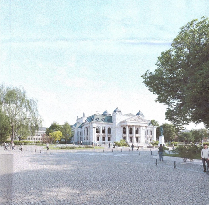 Începe reconfigurarea zonei de la Teatrul Național din Iași: mai multe străzi vor fi închise circulației auto și un sens giratoriu va fi desființat!