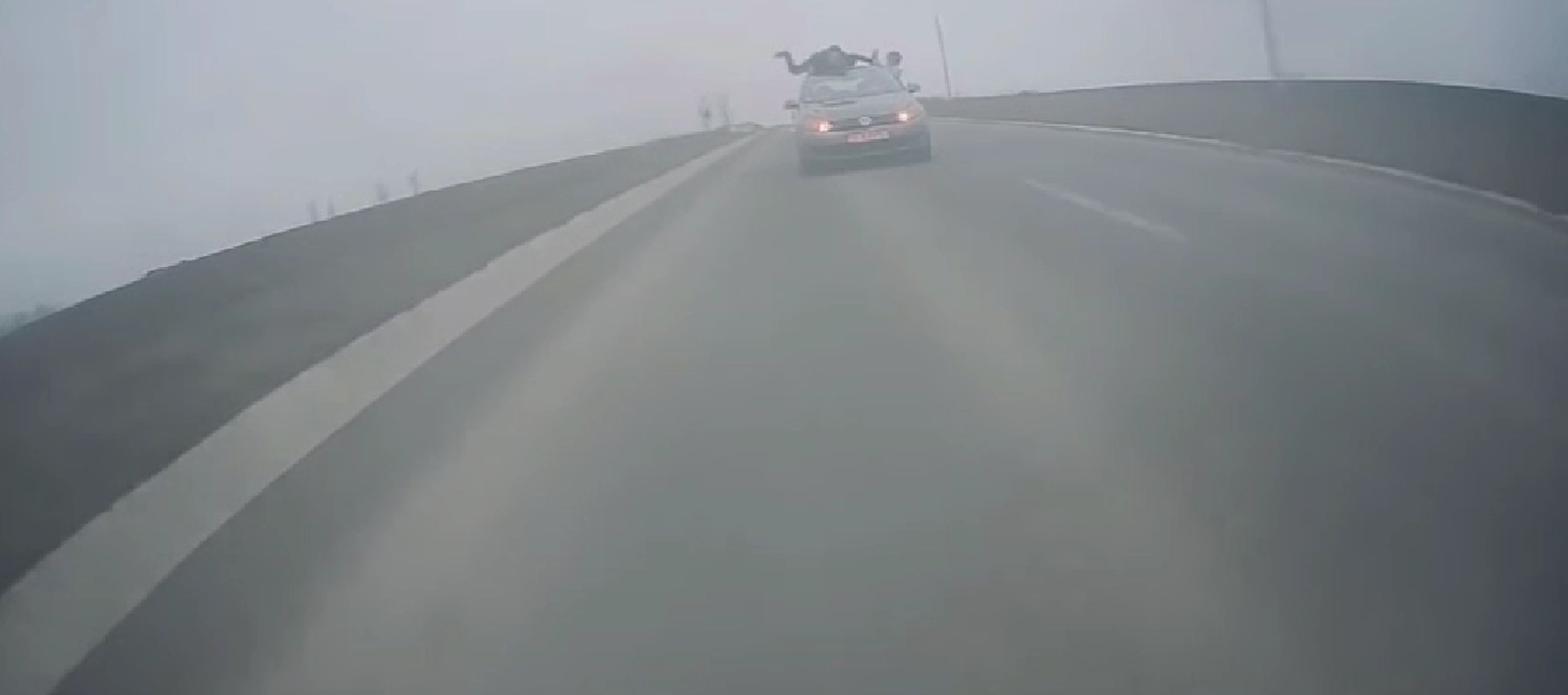 Inconștiență dusă la extrem pe o stradă din Iași. Priviți ce fac doi tineri pe o mașină în mers. Totul a fost înregistrat de o cameră video