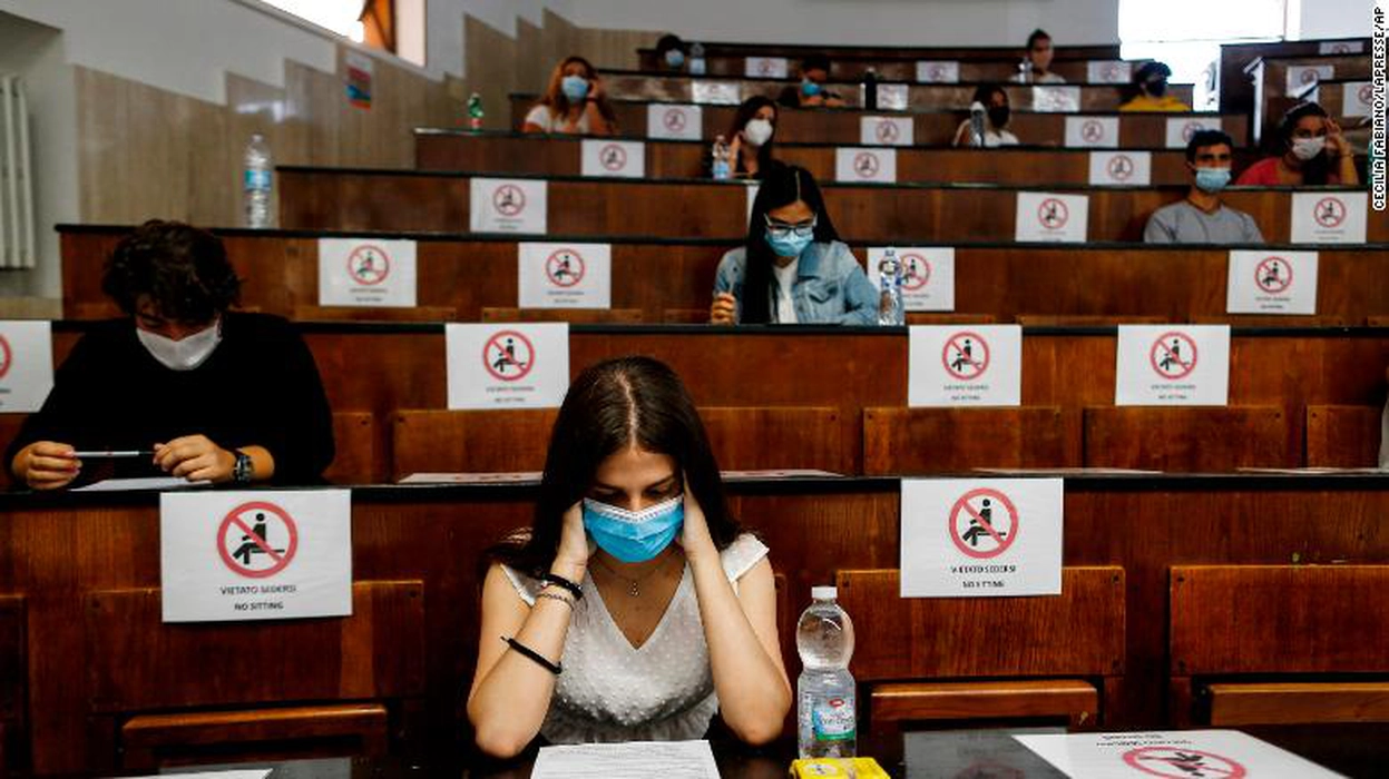 Studenți cu mască în sala de curs