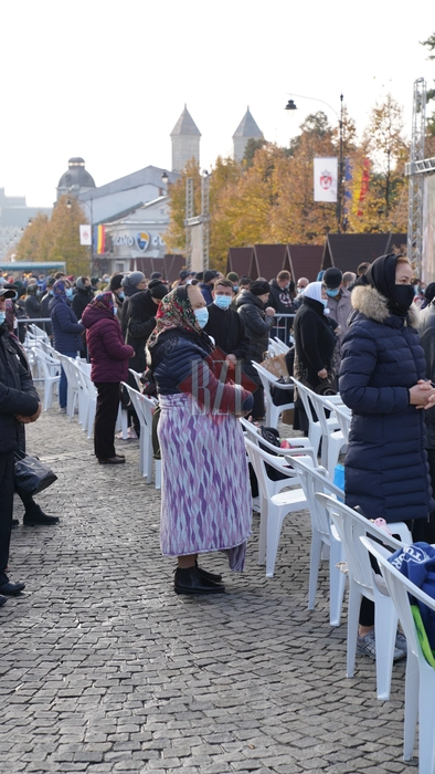Mii de credincioși adunați în fața Mitropoliei Moldovei și Bucovinei din centrul Iașului. Imagini impresionante de la Liturghia Sfintei Cuvioase Parascheva- GALERIE FOTO