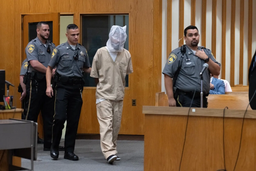 Monstru drogat, acuzat că și-a ucis fiul vitreg de 6 ani cu o bâtă de baseball, forțat să poarte mască de scuipat în tribunal