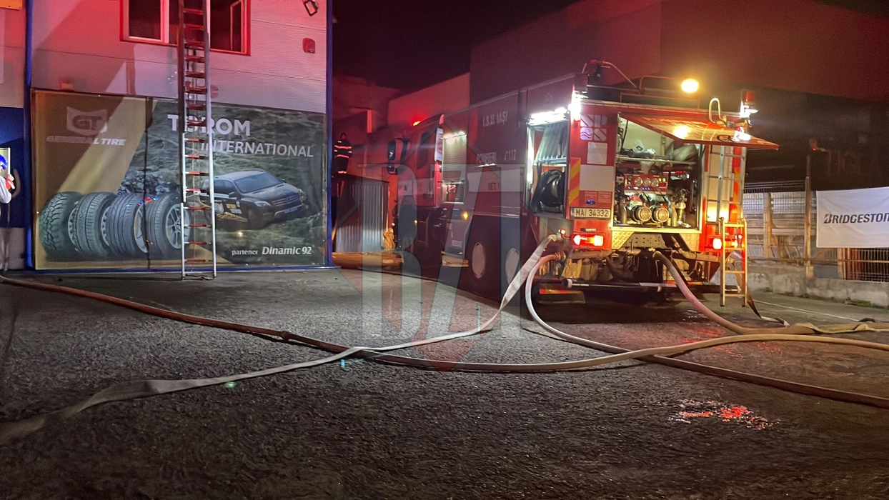 O hală de anvelope aflată în Valea Lupului a luat foc. Pompierii intervin pentru lichidarea incendiului ( FOTO, VIDEO LIVE)