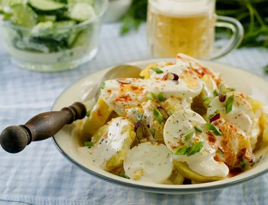 Salata de cartofi cu maioneză. Un preparat clasic, reconfortant și delicios