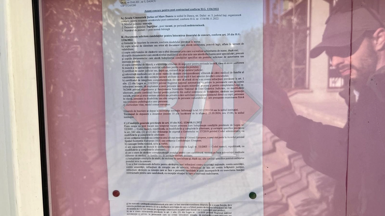 Scandal la o școală din Iași pentru un post scos la concurs, după ce conducerea a schimbat criteriile pentru candidați: „A favorizat-o pe cealaltă contracandidată”