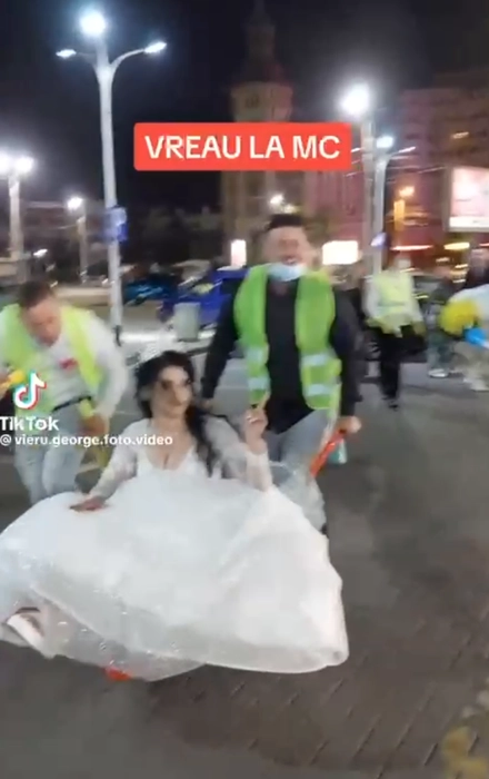 Spectacol la McDonald’s, la Gară! O mireasă a fost cărată cu roaba după ce a fost furată de la petrecere! Frumoasa brunetă a comandat meniul preferat, înconjurată de „muncitori” – FOTO/VIDEO