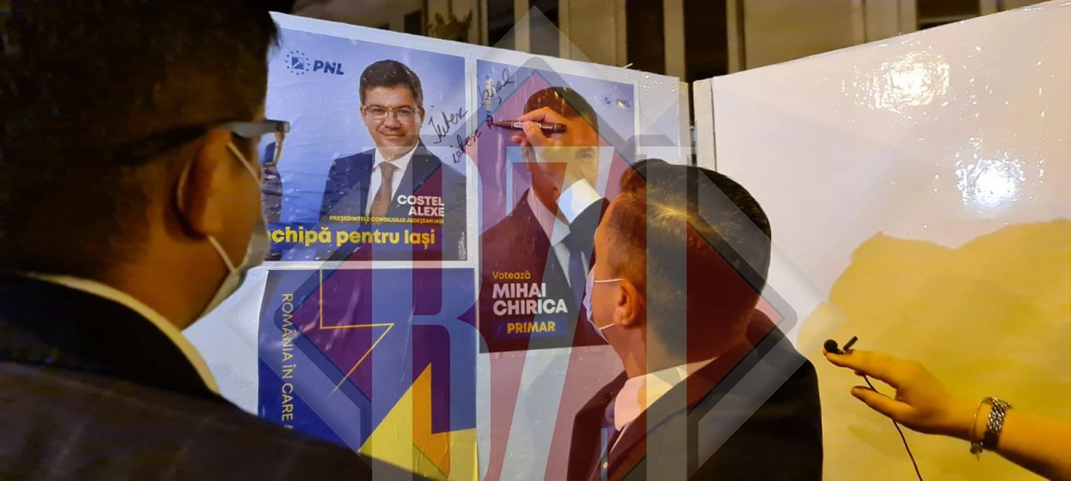 Start oficial în campania electorală! Primarul Mihai Chirica și ministrul Mediului, Costel Alexe, lipesc primele afișe electorale – Galerie Foto, Video