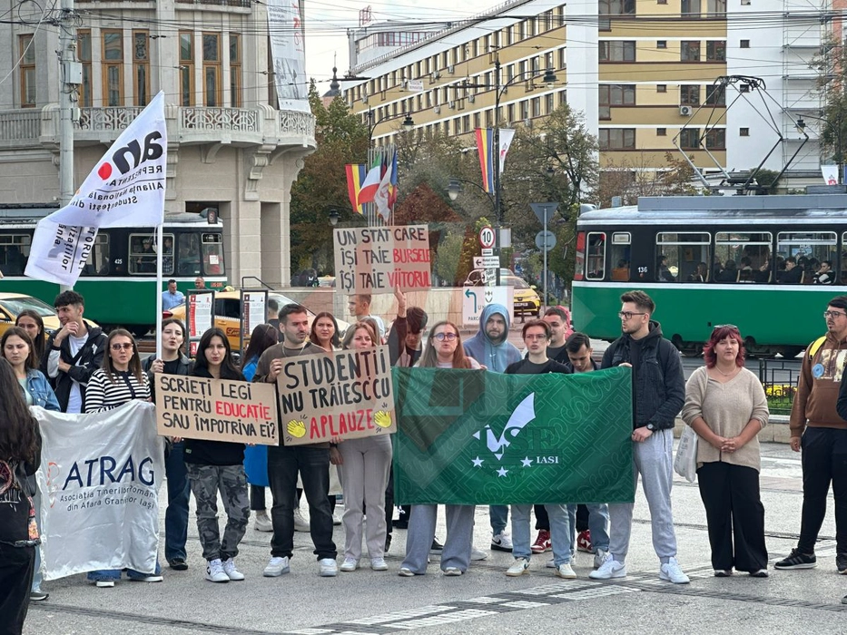 Studenții din Iași protestează în Piața Unirii împotriva austerității Guvernului Bolojan!