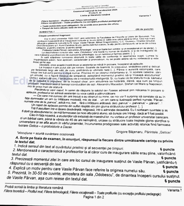 Subiecte BAC Limba și Literatura Română 2025. Ce le-a picat elevilor la prima probă