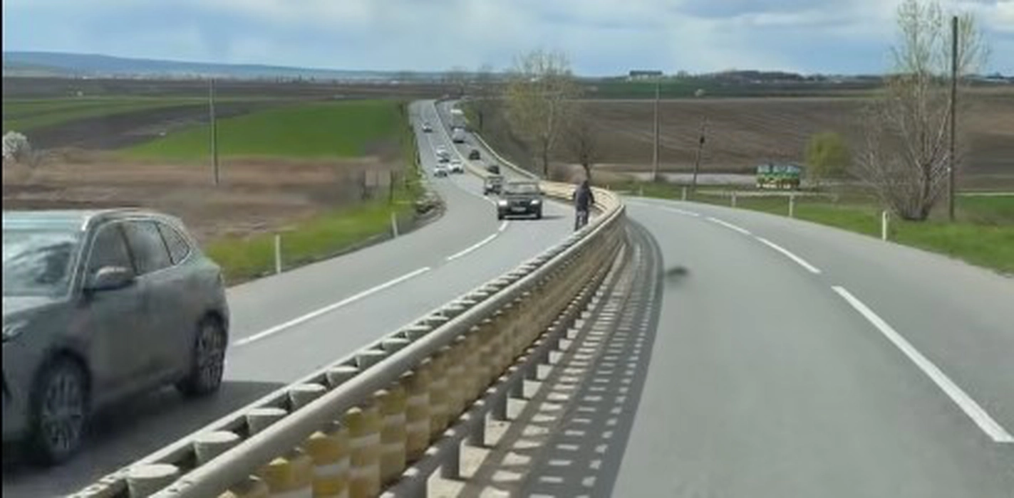 Tragedie evitată pe E85: un ieșean, surprins pedalând pe contrasens spre Războieni