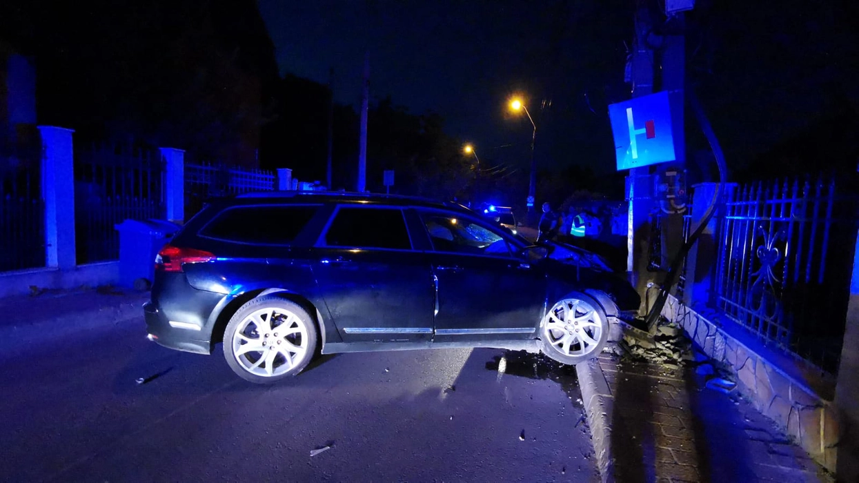 Un ieșean a intrat cu mașina în stâlp! Şoferul a refuzat să sufle în aparatul alcooltest. Bărbatul a avut un dialog incendiar cu polițiștii: Eu sunt medic rezident – FOTO/EXCLUSIV