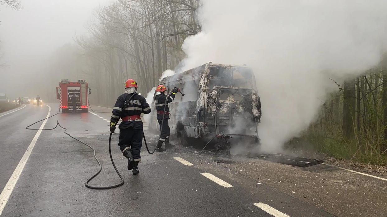 Un microbuz plin de călători, care se deplasa pe ruta Iaşi – Vaslui, a luat foc în mers. Pompierii intervin – EXCLUSIV, FOTO, VIDEO, UPDATE