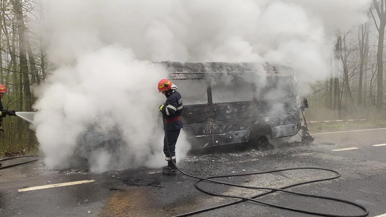 Un microbuz plin de călători, care se deplasa pe ruta Iaşi – Vaslui, a luat foc în mers. Pompierii intervin – EXCLUSIV, FOTO, VIDEO, UPDATE