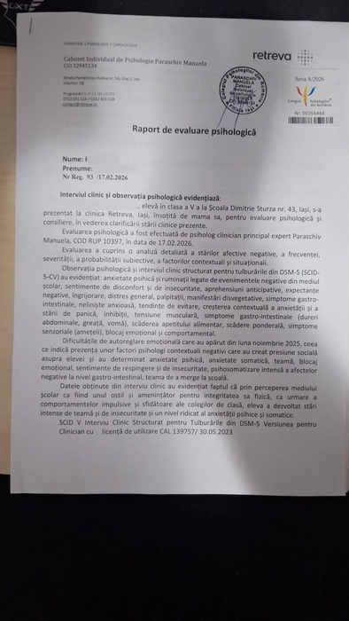 Un nou scandal de bullying a izbucnit la Școala Gimnazială „Dimitrie A. Sturdza” din Iași. „Doamna dirigintă i-a spus că e proastă și că nu are creier”
