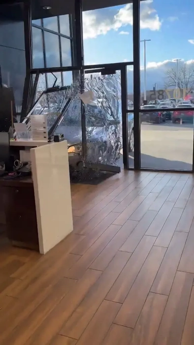 Un șofer furios a intrat cu mașina prin fereastra unei reprezentanțe auto. Ce l-a determinat să recurgă la acest gest exploziv