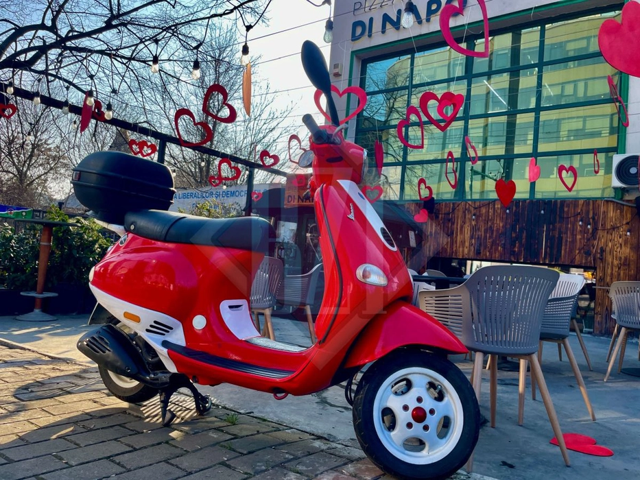 Zeci de inimioare roșii decorează un restaurant din centrul Iașului. Trecătorii se opresc să facă fotografii