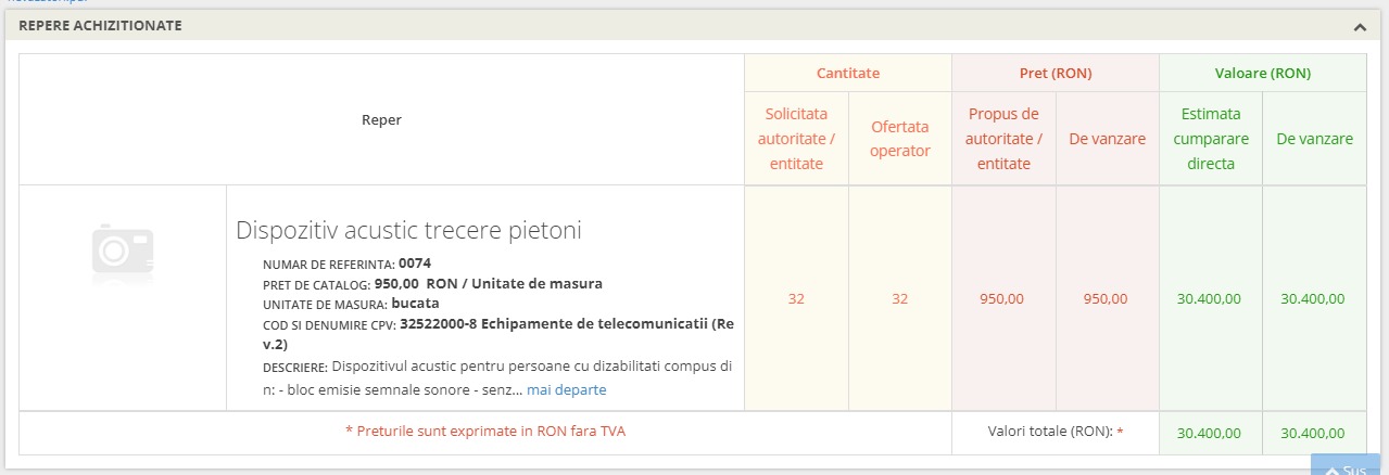 Pe data de 5 mai 2023, municipalitatea ieșeană a achiziționat, prin cumpărare directă, 32 de dispozitive acustice pentru trecerile pentru persoanele nevăzătoare