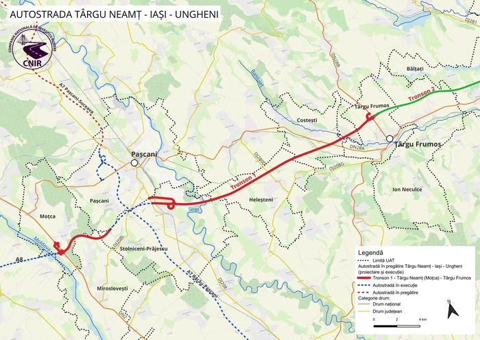 Secțiunea A8 Târgu Neamț (Moțca)-Iași-Ungheni are o lungime de 89 de kilometri (5 tronsoane) și o valoare estimată de peste 25 miliarde lei (circa 5 miliarde de euro).